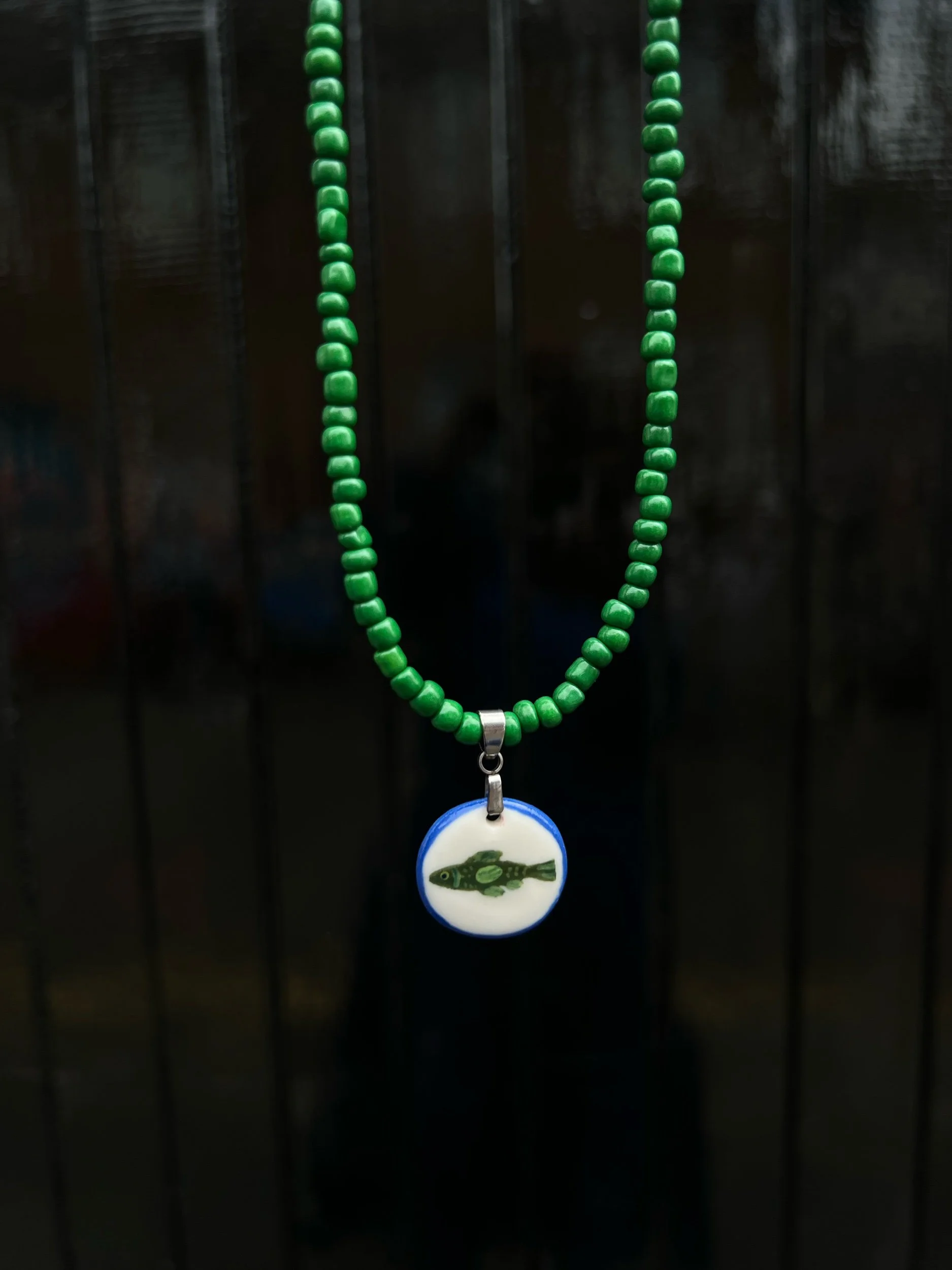 Beaded burgundy necklace with ceramic floral pendant 1x £27